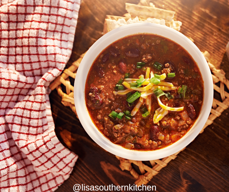 In a stockpot, add in beef/onions with kidney beans and rest of the ingredients (excess the cheese). Let it simmer until beans are tender and bubbly.