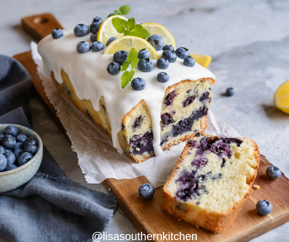 Add in blueberries and lemon zest, lemon juice, mix well. Pour batter into a loaf pan.