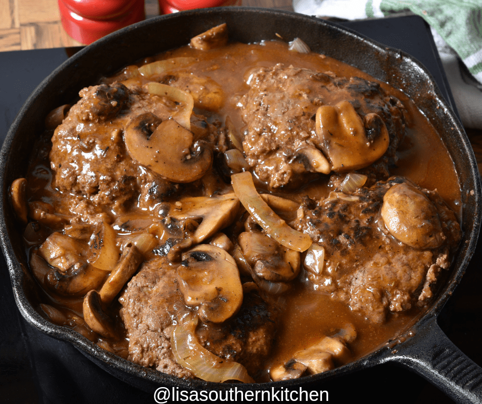 In the same skillet, add in the flour and water, stirring occasionally until thickened. Add in the mushrooms and beef/onions mixture, salt, black pepper, let simmer until hot and bubbly.
