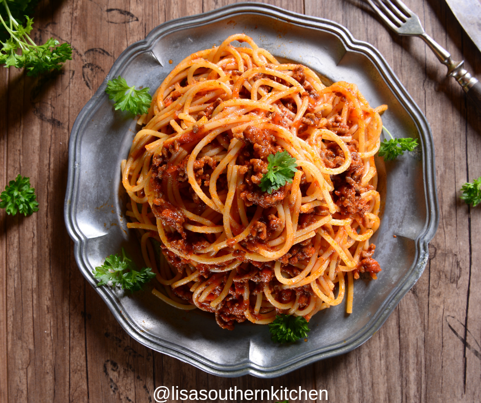 Bolognese is a Italian word of ragu is original from Bologna, Italy. The sauce is much thicker than spaghetti sauce.