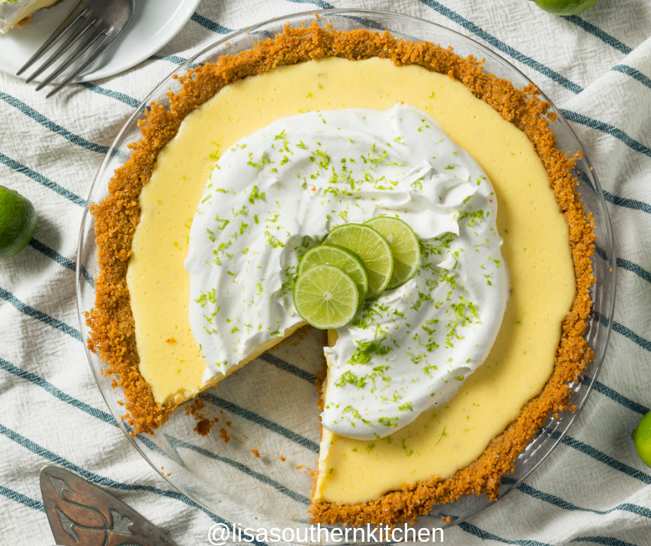 This key lime pie is filled with lime filling in baked homemade graham cracker crust.