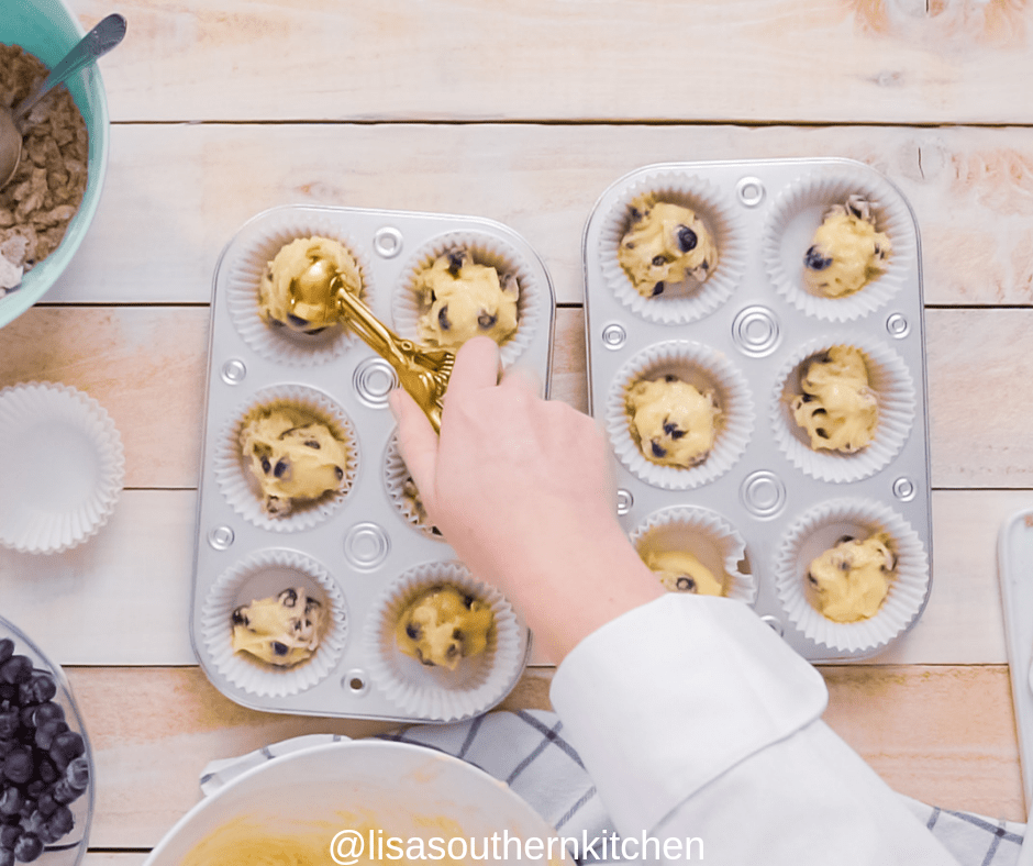 • Use a cookie scoop, scoop the batter into muffin tins.