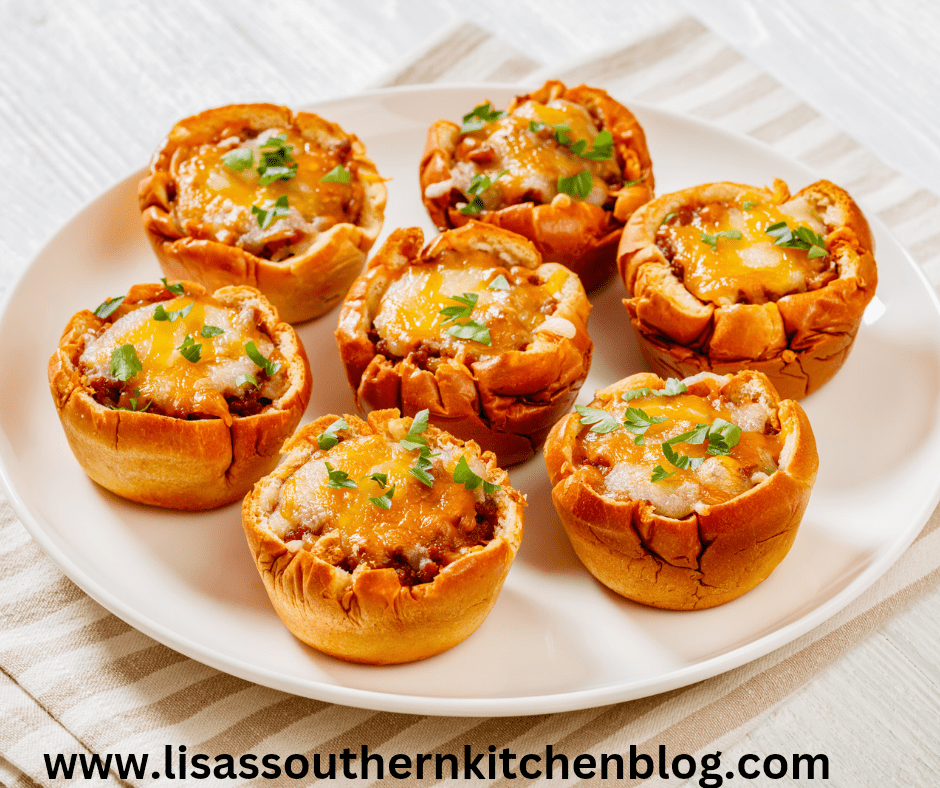 Place the crescent roll into muffin tins and spoon the sloppy joe mixture into each crescent roll and sprinkle cheese on top.