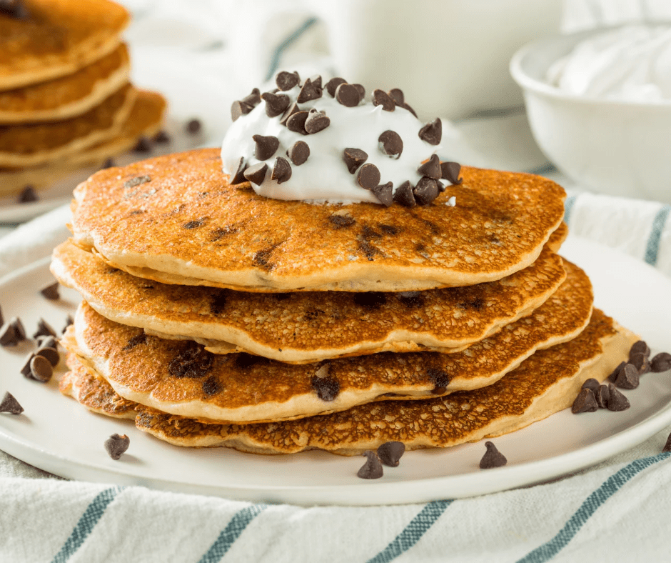 Place it on plate and garnish with whipped cream and chocolate chips.