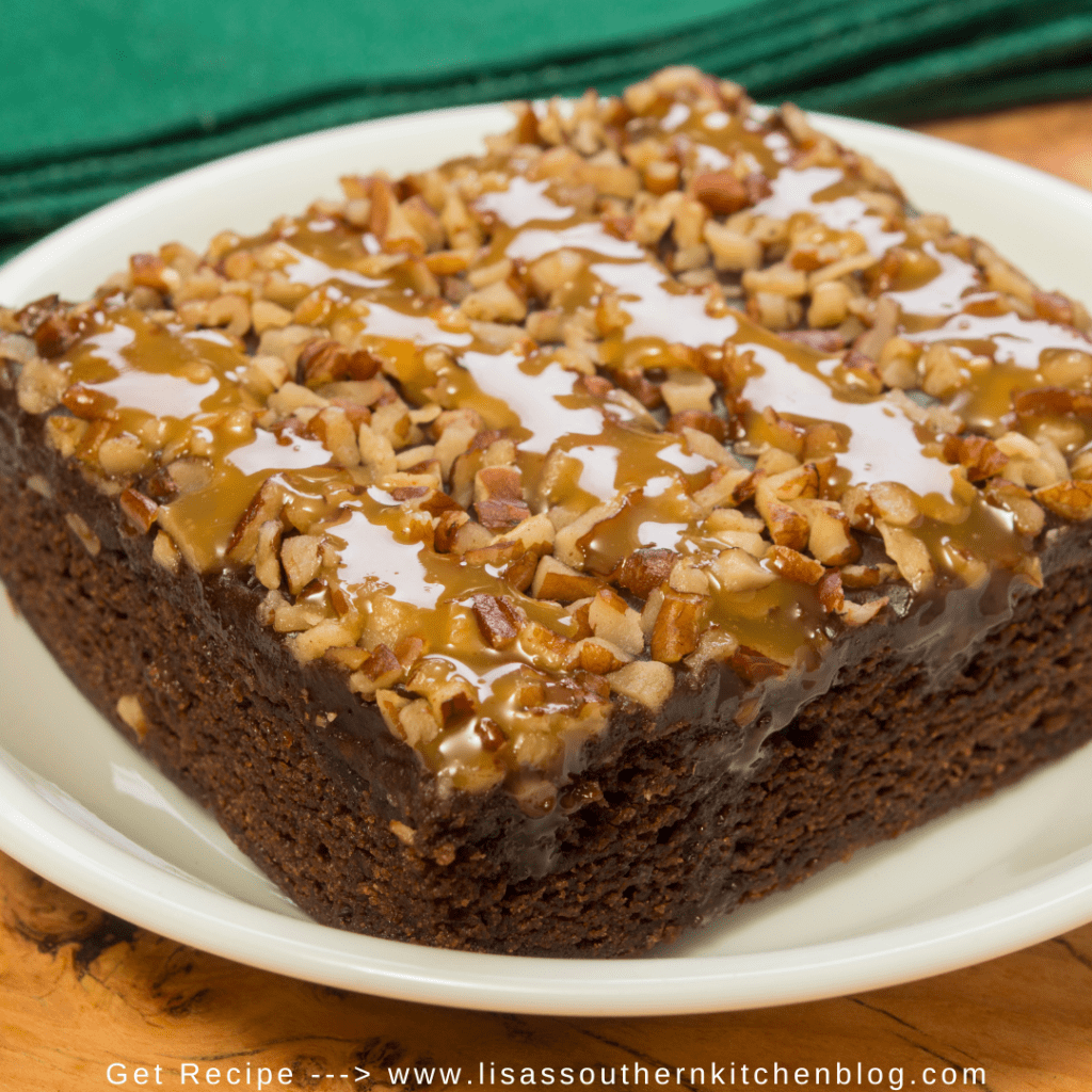 Pour the caramel/pecans over the brownies and chill in the fridge for 45 minutes.