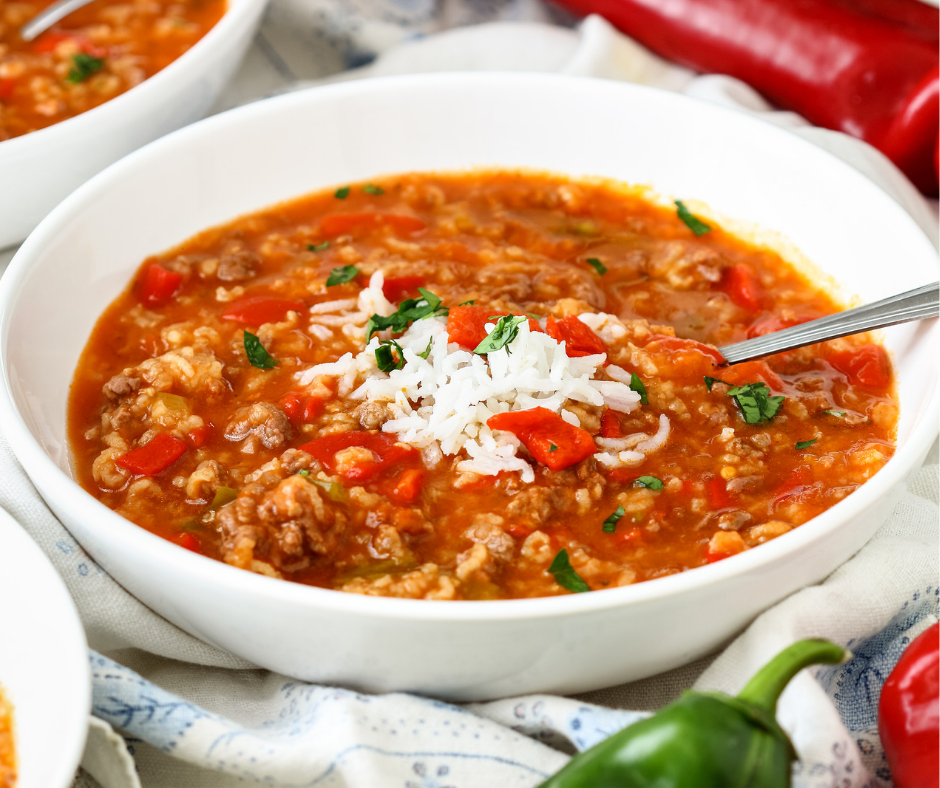 Add in the onions, bell peppers, cook until tender. Add in the garlic and stir in diced tomatoes, tomatoes pasta, season with salt and black pepper, stirring occasionally. Bring it to a boil and cook for 20 minutes.