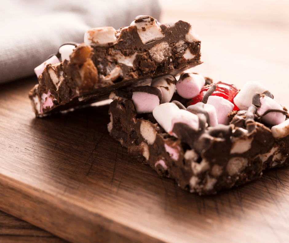 Stir in the marshmallows, peanut and cherries, cookies until combined.