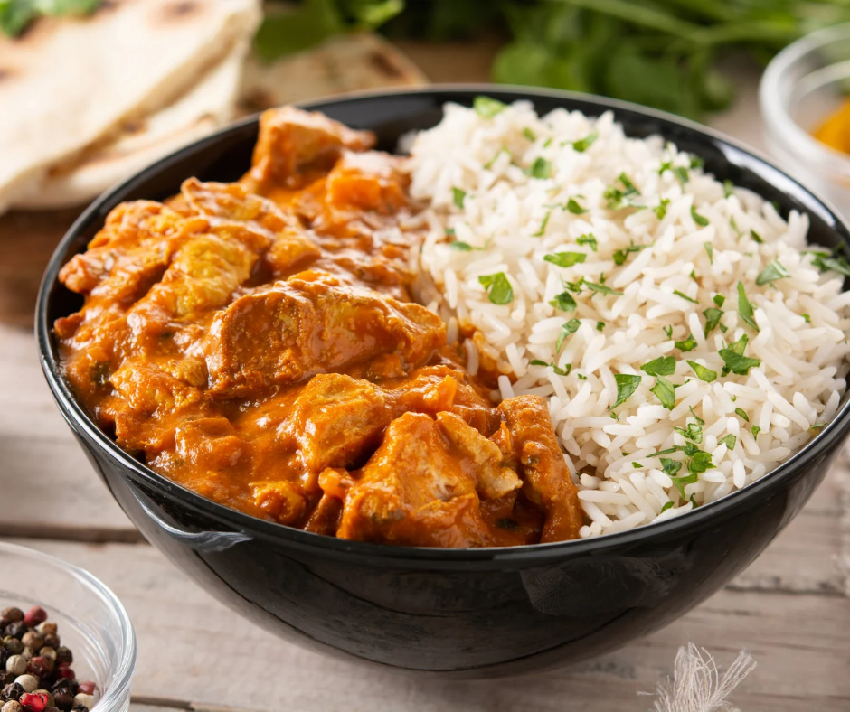 2. In large pot over med high heat, add in curry powder, garam malsa, cook about 2 minutes. Add in the cooked chicken pieces, butter, stir, cook about 5 minutes.