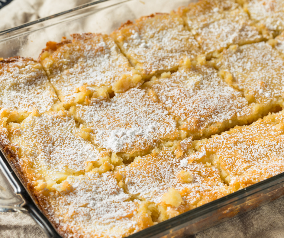 4. Bake for 35 minutes until light golden brown and let it cool for 10 minutes and dust with powdered sugar.