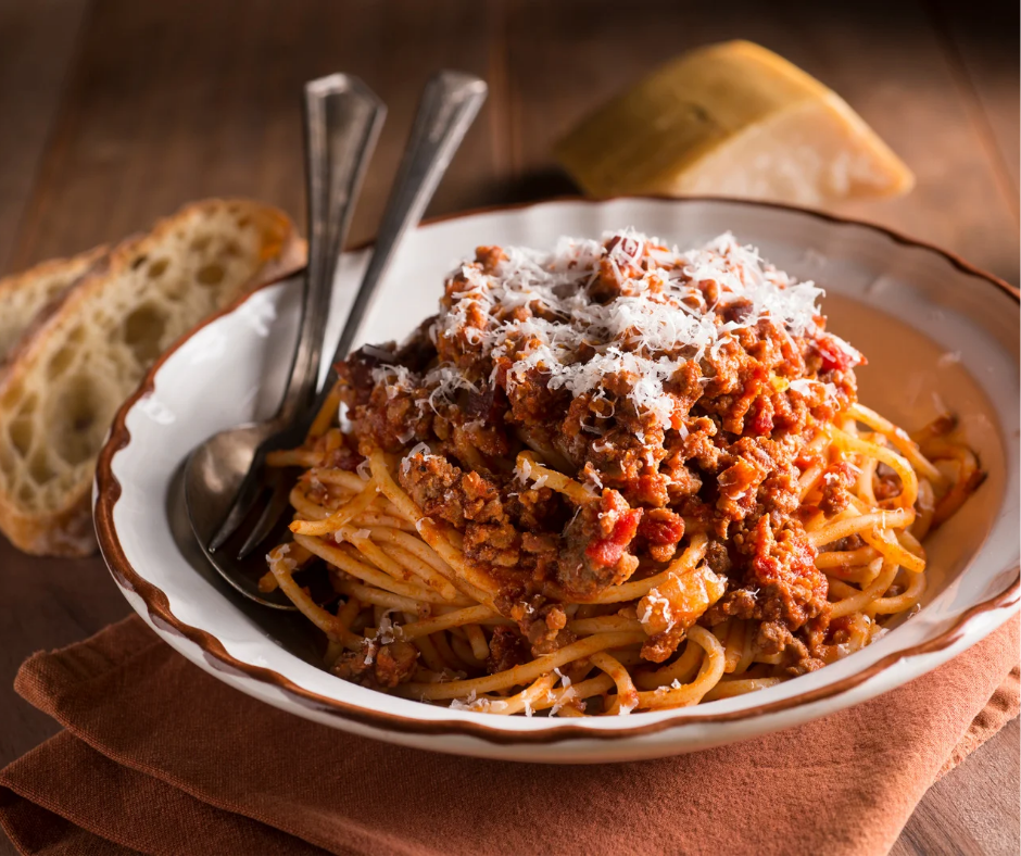 • Serve over spaghetti pasta and garnish with grated parmesan cheese.