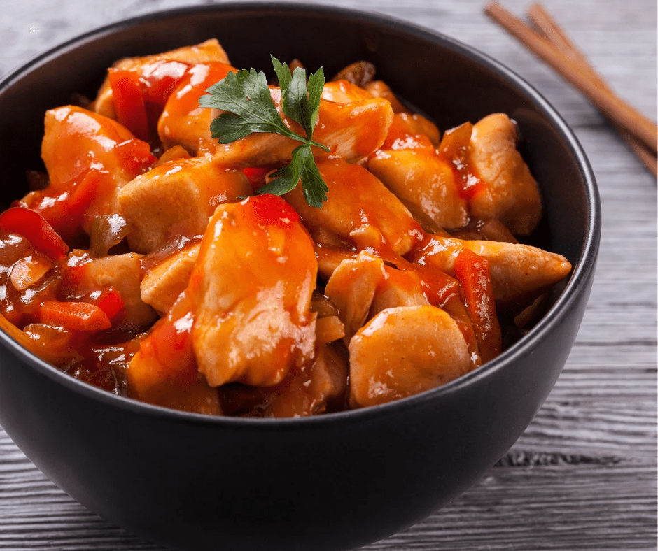 This sweet and sour chicken is easy meal to cook right in microwave.