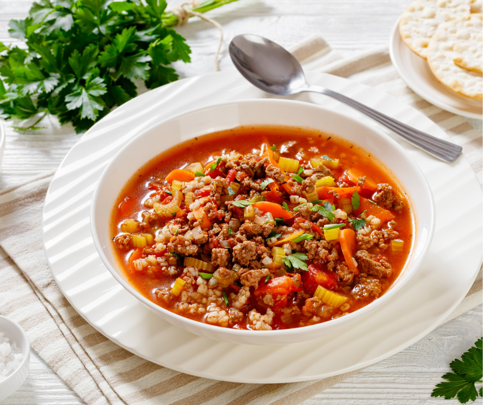 This hamburger soup is a hearty, filled beef, veggies and tomatoes for easy recipe to make in a crockpot.