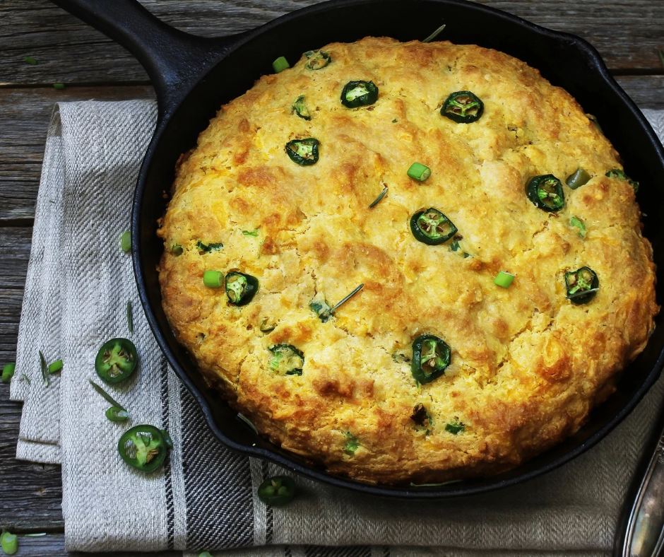 - Pour the batter into greased cast iron skillet and bake for 20 minutes until light golden brown.