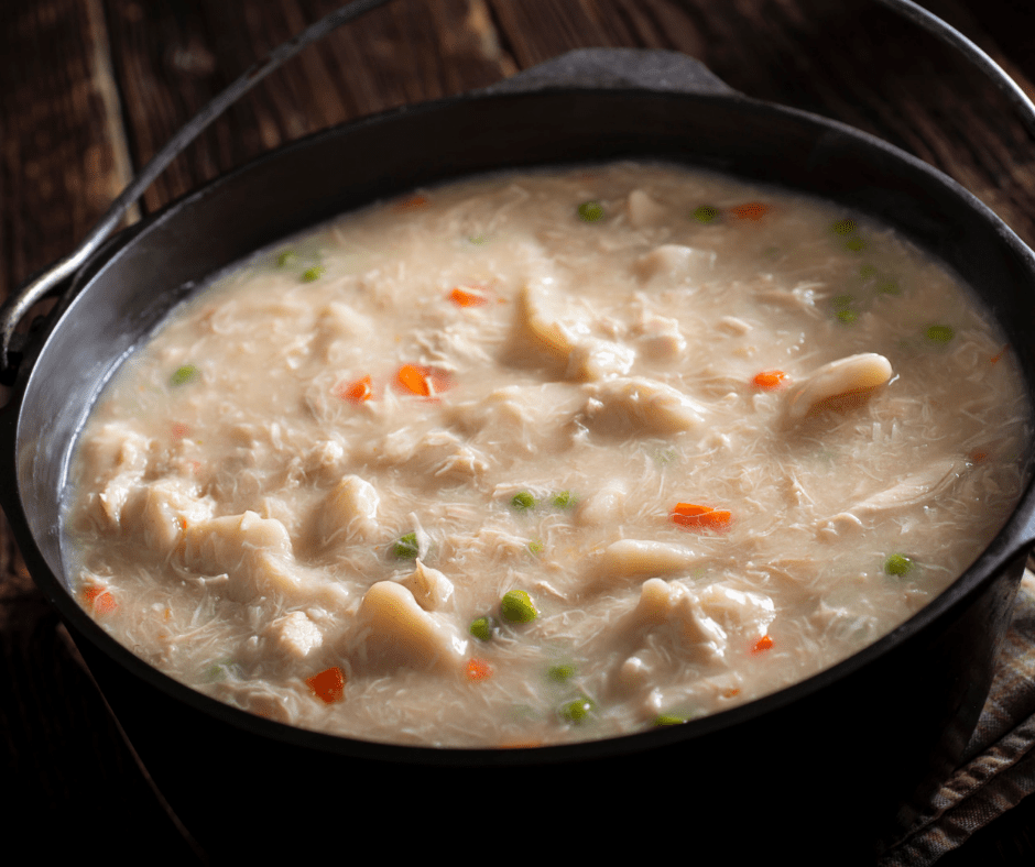 - Make the dumplings, in a med bowl, add in the flour, salt and melted butter and milk, gently stir until it comes dough like.