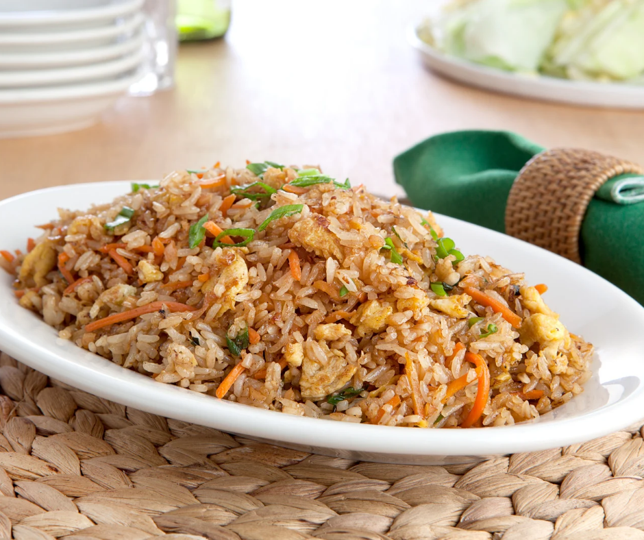 - Remove lid and add in the soy sauce, sesame oil and rice, peas, scrambled eggs, minced garlic, stir well until combined.