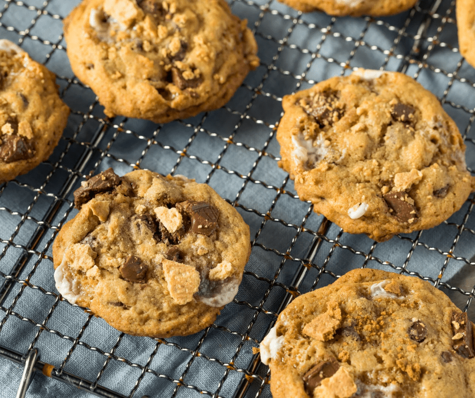 - In a bowl of stand up mixer add in the flour, white sugar and brown sugar, vanilla extract, butter, egg, beat well until combined. Stir in chocolate chips and add in the marshmallows and graham crackers, stir well until combined.