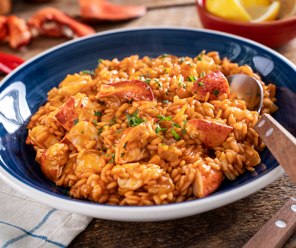 - Add in vegetable broth, stir well until combined and add in the lobster meat, cheese cook for 15 minutes until creamy.