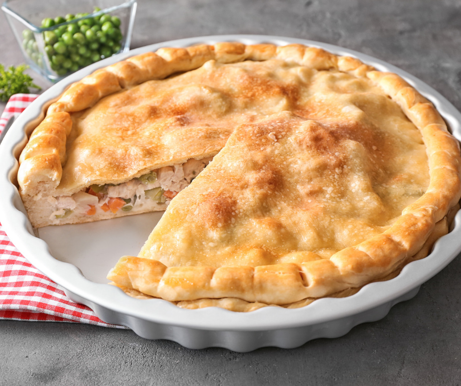 - In the bottom of greased pie pan lay one pie crust down and pour filling into the pie crust and lay second pie crust on top.