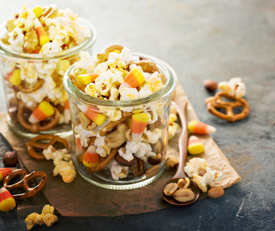 - Add in the Reese’s Pieces and candy Corn, stir well until combined.