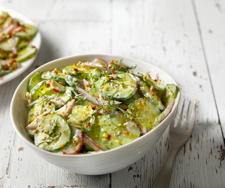 - Add in the apple cider vinegar and sugar, stir to coat cucumber and season with black pepper, and add in the chopped dill, stir well until combined.