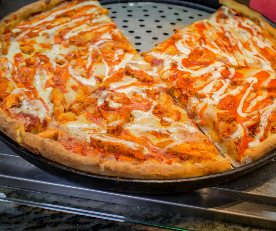 - Sprinkle 1 cup cheese on the crust and drizzle hot sauce over the cheese.