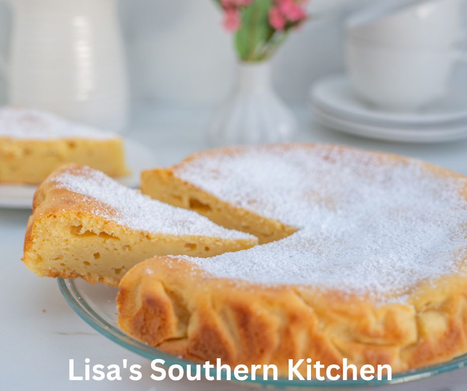 - Pour the cake batter into greased round cake pan and bake for 35 minutes until light golden brown. Let cake cool for 10 minutes before dusting with powdered sugar and serve.
